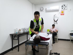 活动开始杨师傅耐心地对长者开展问诊、询问年龄、有无高血压等基础疾病,然后对长者的肩部、颈部、腰部、手臂以及腿部的检查及分析,最后通过专业的推拿手法对局部疼痛部位进行治疗。