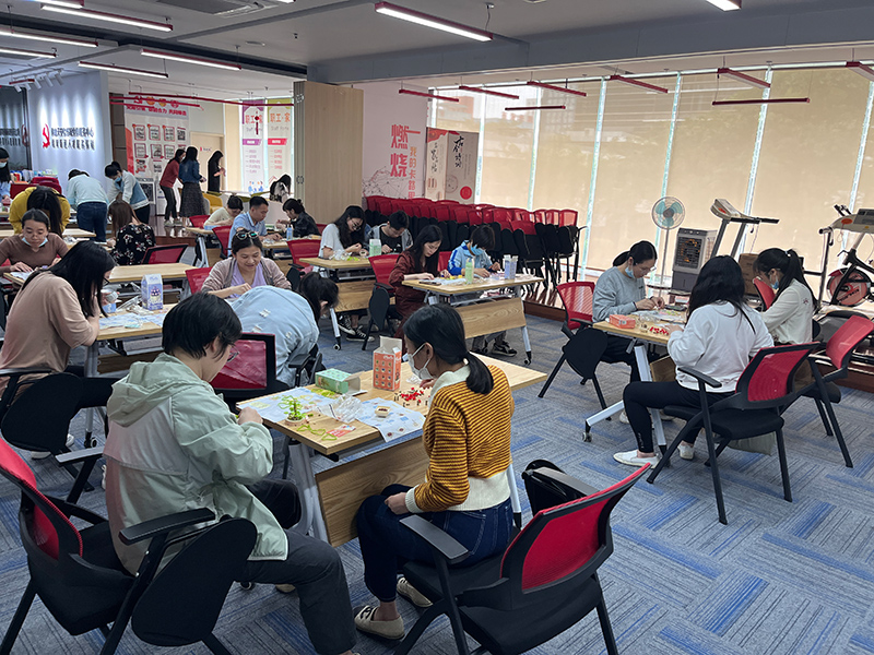 2023年4月,由桂城街道“两新”党工委主办的桂城“两新”党建“十大”品牌活动之“赋能午间一小时”活动分别在广东瀚天科技城党群服务中心和佛山天安数码城党群服务中心开展,为园区企业党员、员工提供一系列减压赋能服务,先后策划开展了趣味减压游戏、多肉积木DIY、轻泥水晶球黏土DIY、综合性瑜伽课程等活动,共吸引374人次参加。
